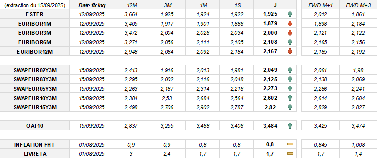SWAPEUR 15Y3M : +3 pdb sur une semaine, -8 pdb sur un mois, +1 pdb attendu à M+1.