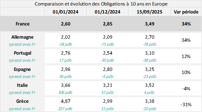 Note #69 ; La France sous tension, entre instabilité politique, risque de dégradation souveraine et pression accrue des marchés financiers