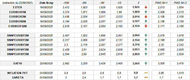 SWAPEUR02Y3M : stable sur une semaine, +7 pdb sur un mois, +1 pdb attendu à M+1