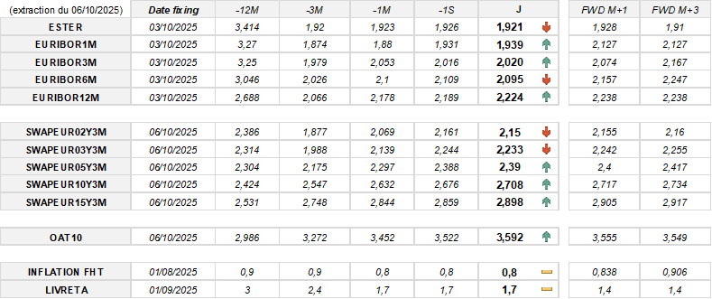 SWAPEUR10Y3M : +3 pdb sur une semaine, +8 pdb sur un mois, +1 pdb anticipé à M+1