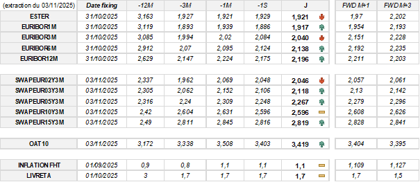Marché des taux : stabilisation à court terme, légers replis mensuels, rebond anticipé
